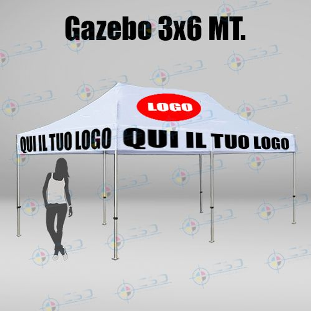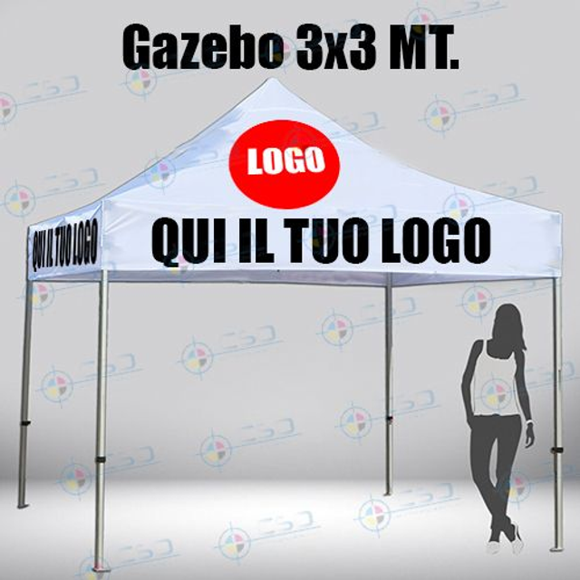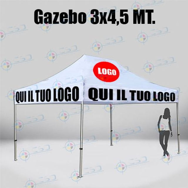 Gazebo pronto in otto giorni: con telo impermeabile personalizzato stampa quadricromia sui quattro lati (prezzo con IVA)