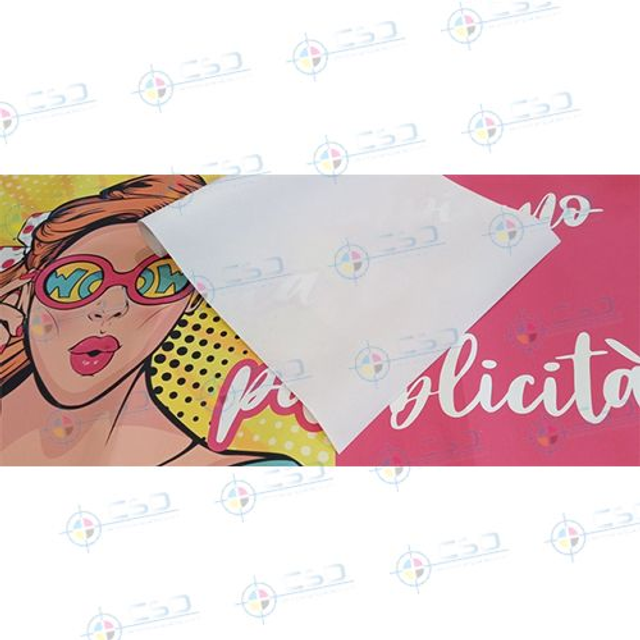 Stampa monofacciale quadricromia, qualità HQ (massima coprenza possibile dei fondi rossi e neri richiesti) compatibilmente alle caratteristiche del prodotto, ad elevato assorbimento di colore.